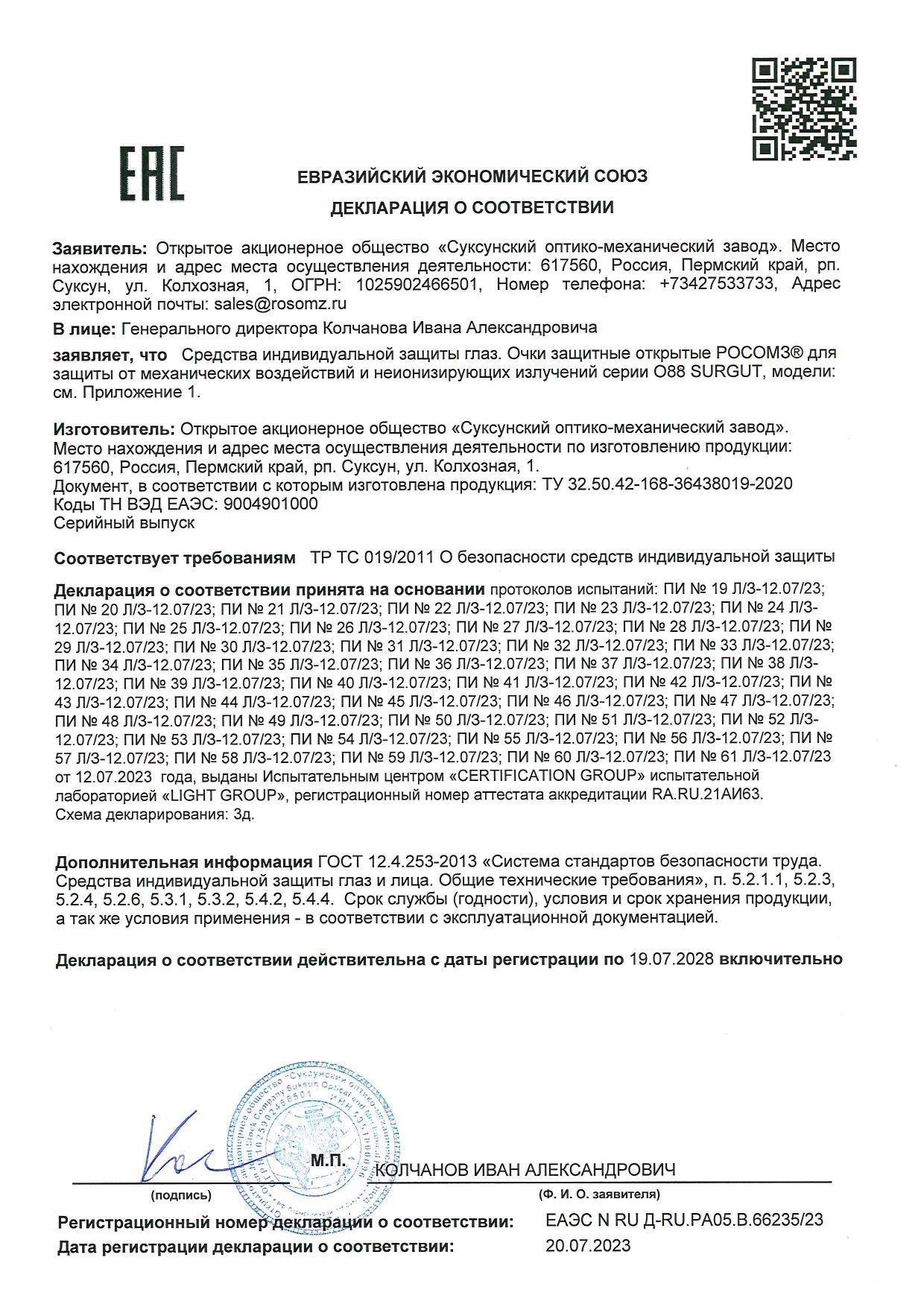 Очки защитные открытые O88 SURGUT (PC) (18840)